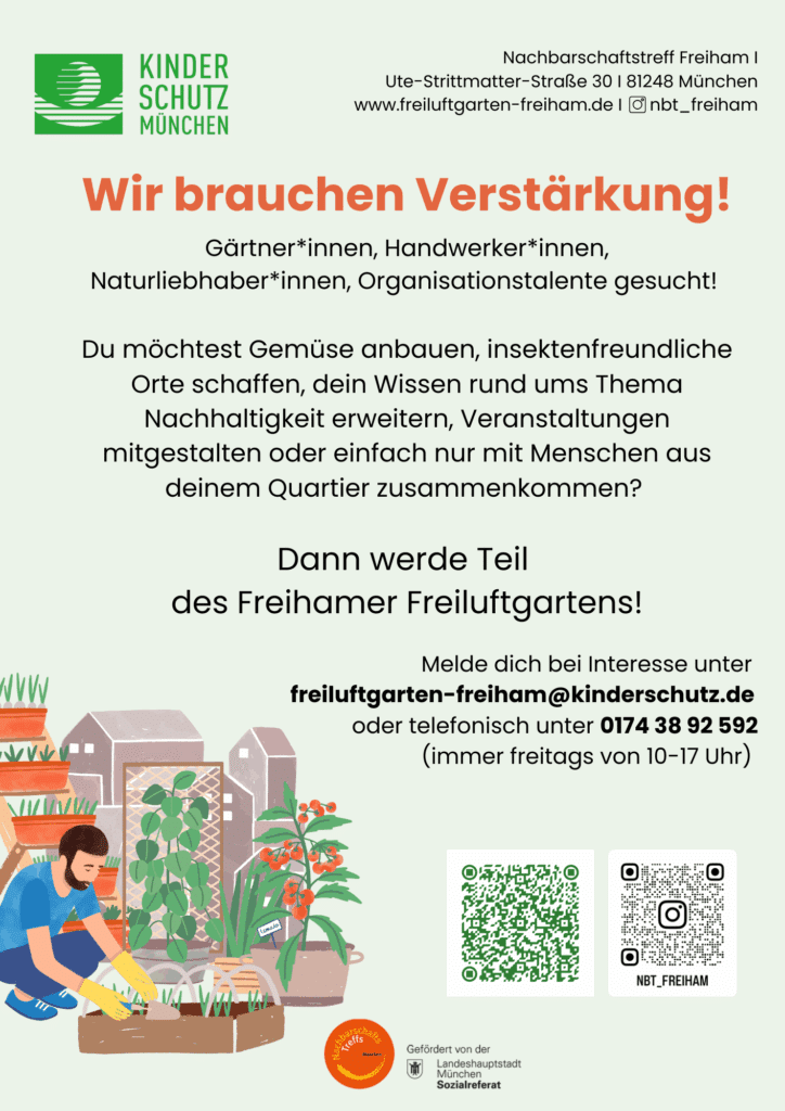 Wer Interesse hat, meldet sich gerne per E-Mail unter freiluftgarten-freiham@kinderschutz.de.