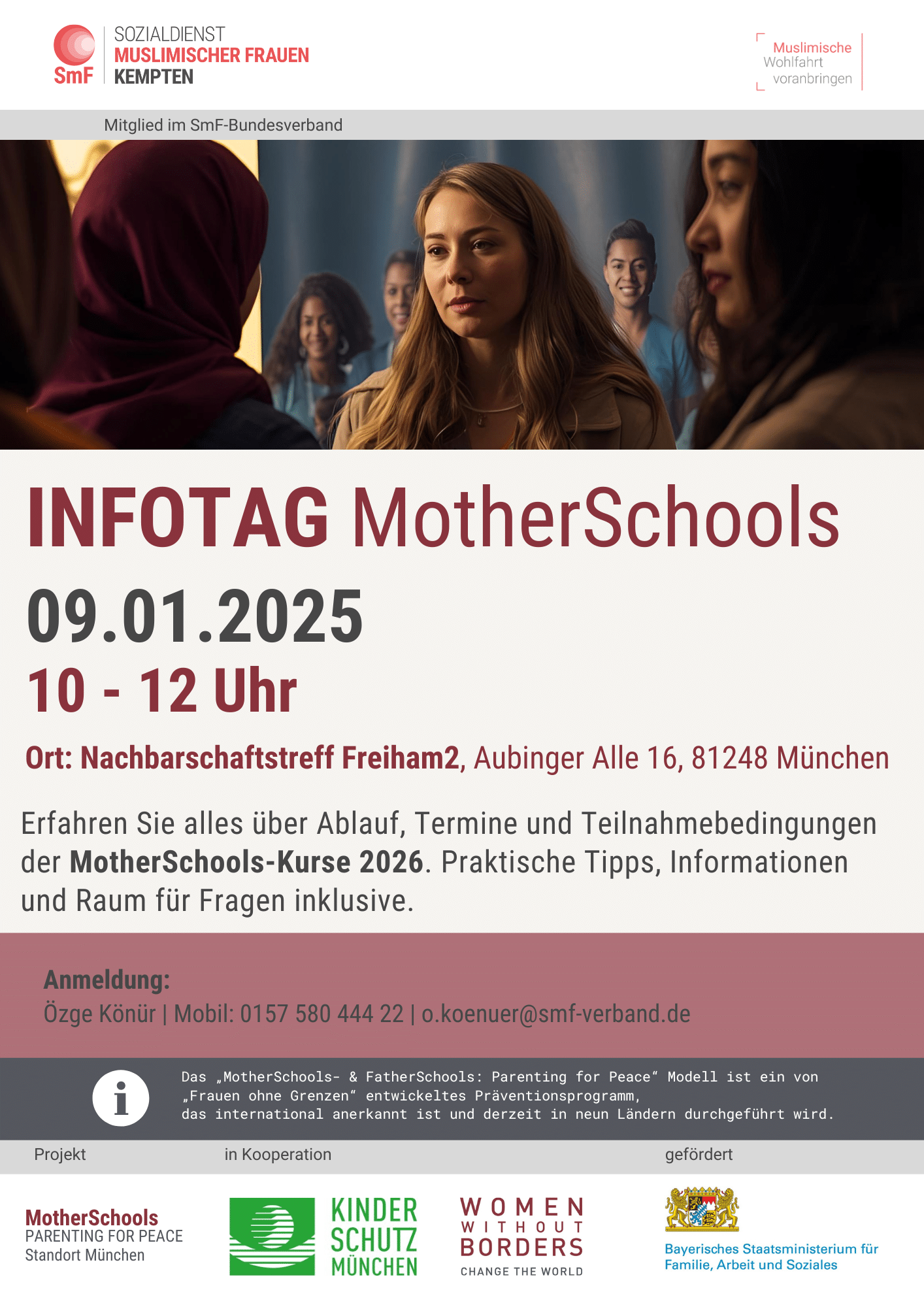 Am Infotag erhalten Sie einen umfassenden Einblick in die MotherSchools-Kurse 2026:im Nachbarschaftstreff Freiham2